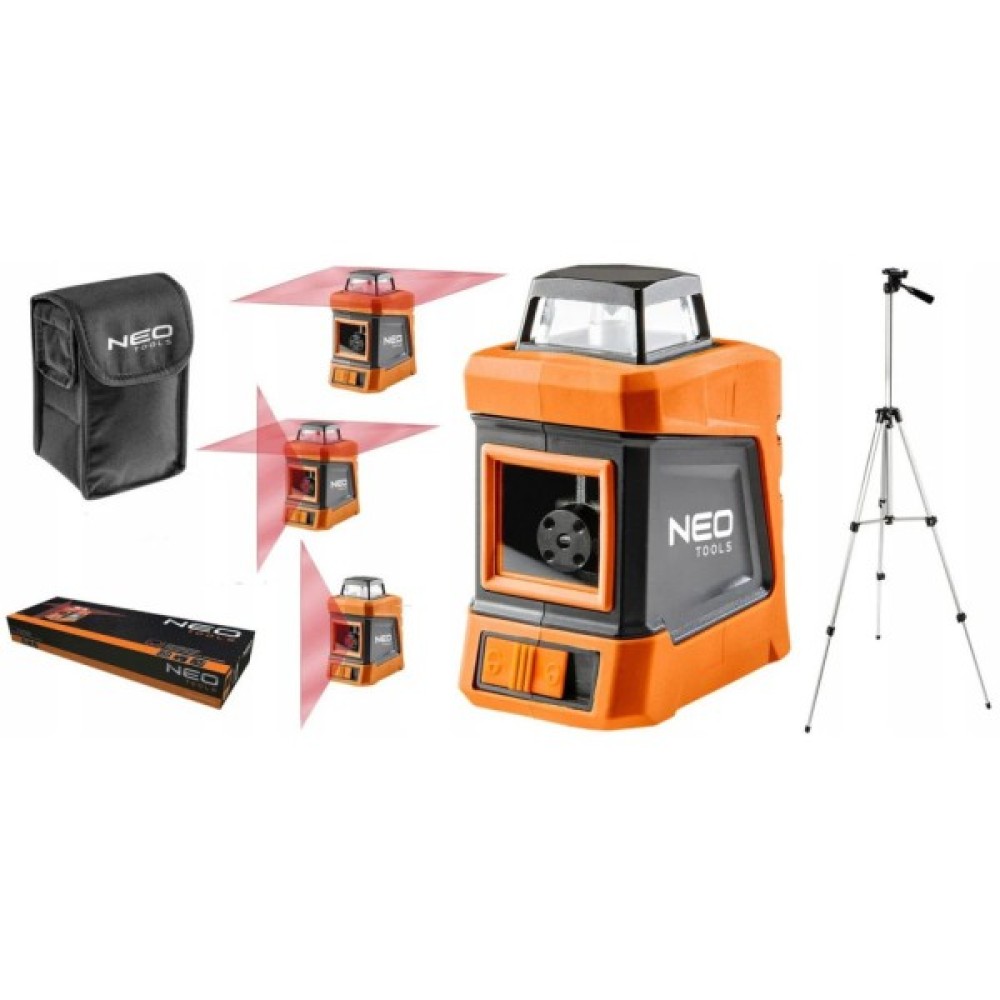 Перехресний лазерний прилад NEO з довжиною хвилі 630-670 нм застосовується при виконанні будівельних і оздоблювальних робіт. Продукт призначений для побудови вертикальної, горизонтальної ліній та обох ліній одночасно на відстані до 15 метрів. Безперечною перевагою приладу є скорочення часу, необхідного для виконання робіт, пов'язаних із вирівнюванням. Перехресний лазерний прилад із самонівелюванням у діапазоні +/- 4°, що гарантує точну роботу без необхідності ручного налаштування.