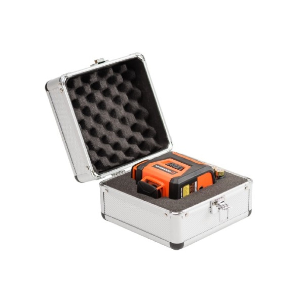Автоматичне самовирівнювання займає до 4 секунд, завдяки чому Ви отримуєте лінії високої точності практично без витрат часу на вирівнювання приладу. Робоча відстань моделі – до 20 метрів. Час використання на одному заряді батарей становить більше 15 годин безперервної роботи. Поставляється у зручному для зберігання алюмінієвому кейсі, який також захистить прилад від ударів і пошкоджень під час транспортування.