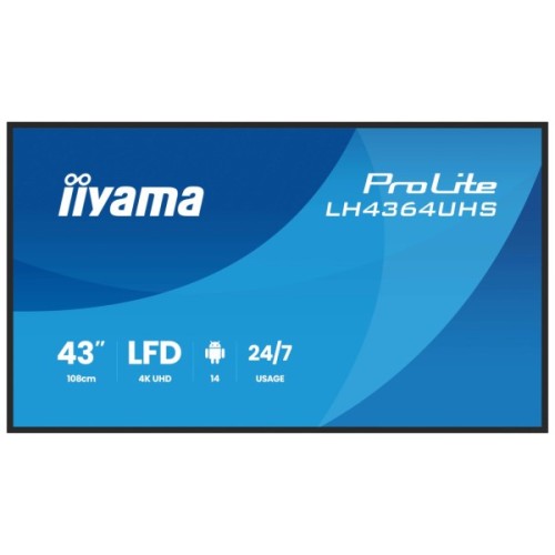 Модель ProLite LH4364UHS-B1AG — це 43-дюймовий 4K UHD дисплей нового покоління, створений для максимально ефективної візуальної комунікації у вашому бізнесі. Оснащений операційною системою Android 14, платформами iiSignage² (CMS), iiControl (DMS) та iiShare (бездротова презентація), він забезпечує просте й інтуїтивне керування контентом. Підтримка Wi-Fi дає змогу оновлювати контент дистанційно, а режим 24/7 гарантує надійну роботу без перерв. Ідеальне рішення для роздрібної торгівлі, офісних просторів, готелів або закладів харчування — цей дисплей поєднує яскравість, гнучкість і привабливий дизайн для максимальної залученості аудиторії.