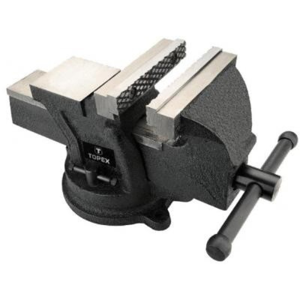 Лещата Topex поворотні, 125 мм (07A212)Лещата слюсарні поворотні TOPEX з високою силою затиску губок. Призначені для закріплення предметів, що піддаються обробці ручним або машинним способом. Міцна чавунна конструкція з ковадлом і загартованої різьбленням дозволяє використовувати лещата для важких робіт. Поворотна підстава дає можливість розташувати предмет в найбільш зручною для роботи позиції.