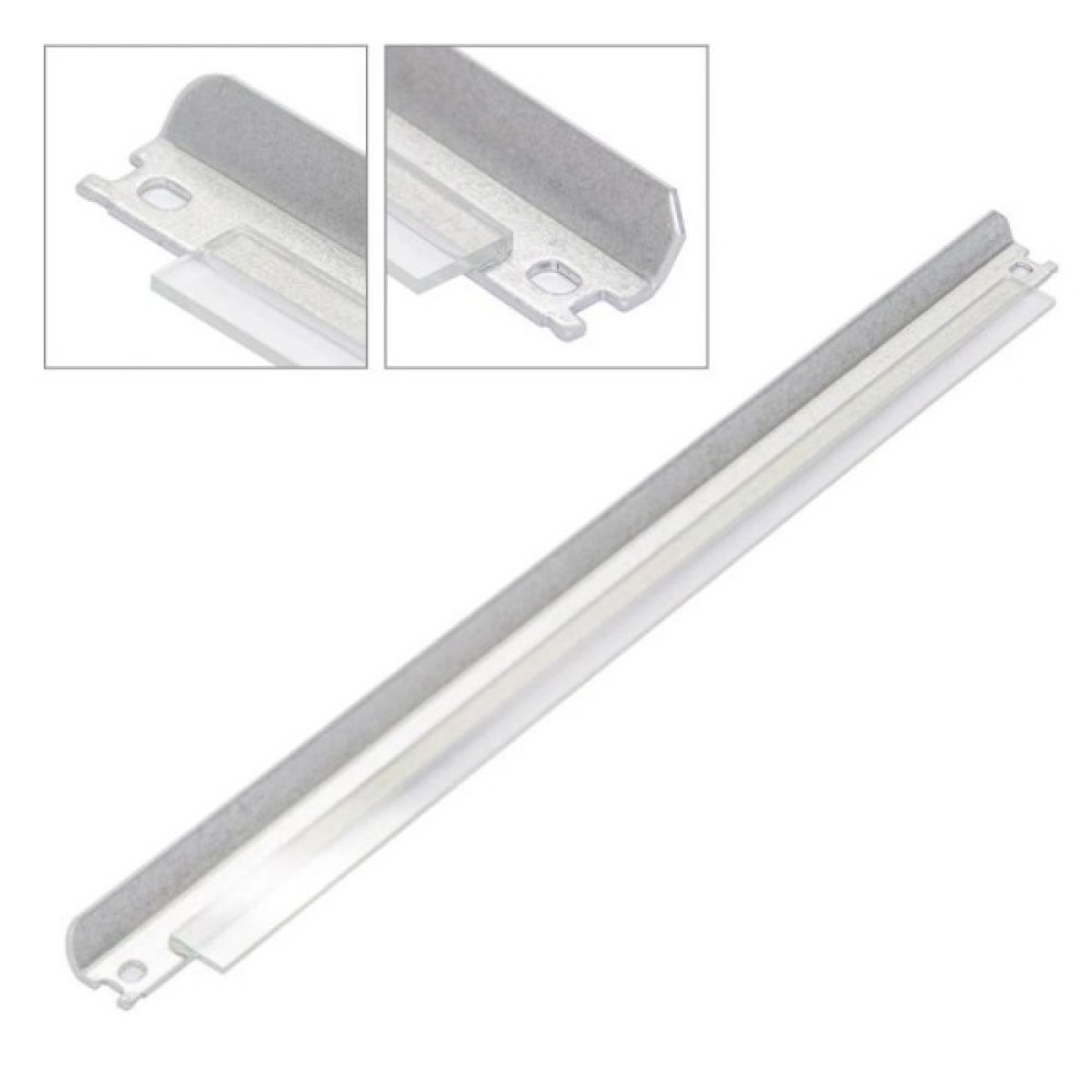 Очисне лезо - це спеціальна пластина, яка використовується для очищення фотобарабана від залишкового тонера, який не був нанесений на папір в процесі перенесення зображення. Лезо виготовляється з міцного і еластичного поліуретану. Воно повинно щільно прилягати до фотобарабана і в той же час не повинно пошкоджувати його. Якість поверхні леза, гострота кромок і точні розміри, дуже важливі для нормальної роботи картриджа. Від його стану залежить термін служби фотобарабана, так як лезо має безпосередній контакт з фотобарабаном під час друку. Замініть ніж призводить до незадовільної якості друку. Основні дефекти, що чистить леза - це погнутости, подряпини і зазубрені його поверхні. Його як правило змінюють разом з фотобарабаном.