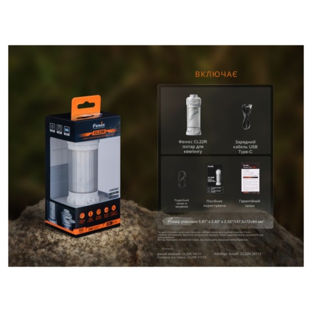 Зручність і надійність в умовах подорожей забезпечує вбудований акумулятор ємністю 2600 мАгод, що заряджається через сучасний порт USB Type-C. Захисна силіконова заглушка не лише запобігає проникненню вологи та пилу, а й продовжує термін служби пристрою, доповнюється захистом класу IP65. Легкість провадження та тривалий час автономної роботи – до 200 годин на одному заряді – робить Fenix CL22R незамінним супутником.