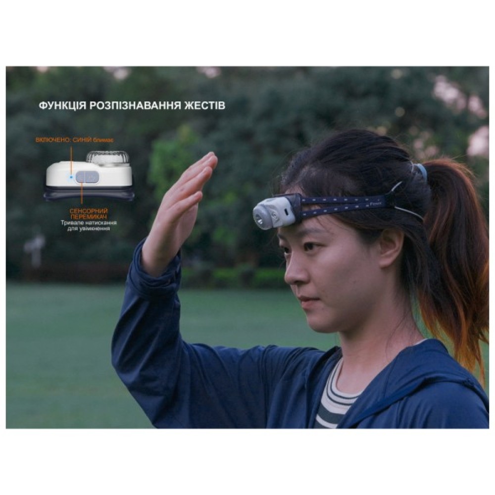 Інноваційна система керування жестами дозволяє легко вмикати та вимикати ліхтар, просто помахуючи рукою перед ним. Це особливо зручно в умовах поганої видимості або коли ваші руки зайняті. Крім того, передбачено функцію блокування, щоб уникнути випадкового включення при транспортуванні або зберіганні.