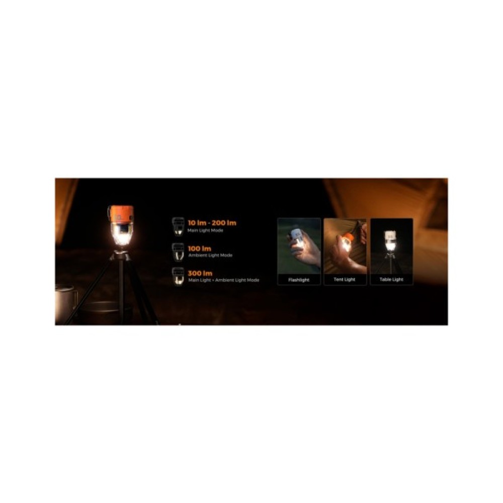 Джерелом енергії для цього багатофункціонального пристрою є вбудований акумулятор, заряджати який можна через USB Type-C порт. Така зарядка забезпечує надійність і зручність у користуванні, а також тривалу безперебійну роботу ліхтаря під час тривалих подорожей далеко від цивілізації.