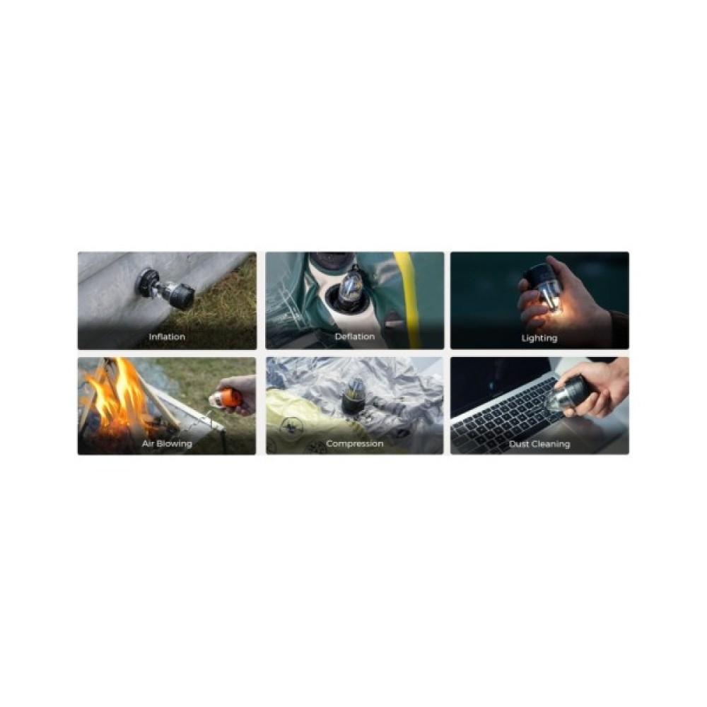 Унікальна функція ліхтаря — це вбудований насос. За допомогою цього невеликого, але потужного пристрою, ви зможете без зусиль надути матрас або подушку з потужністю до 500 літрів на хвилину, що робить процес надзвичайно швидким і зручним. Тиск від 3 до 5 кПа дозволяє надути невеликий килим всього за 70 секунд, а подушку — за 5 секунд. Це значно заощадить ваш час і зусилля на природі чи в кемпінгу.