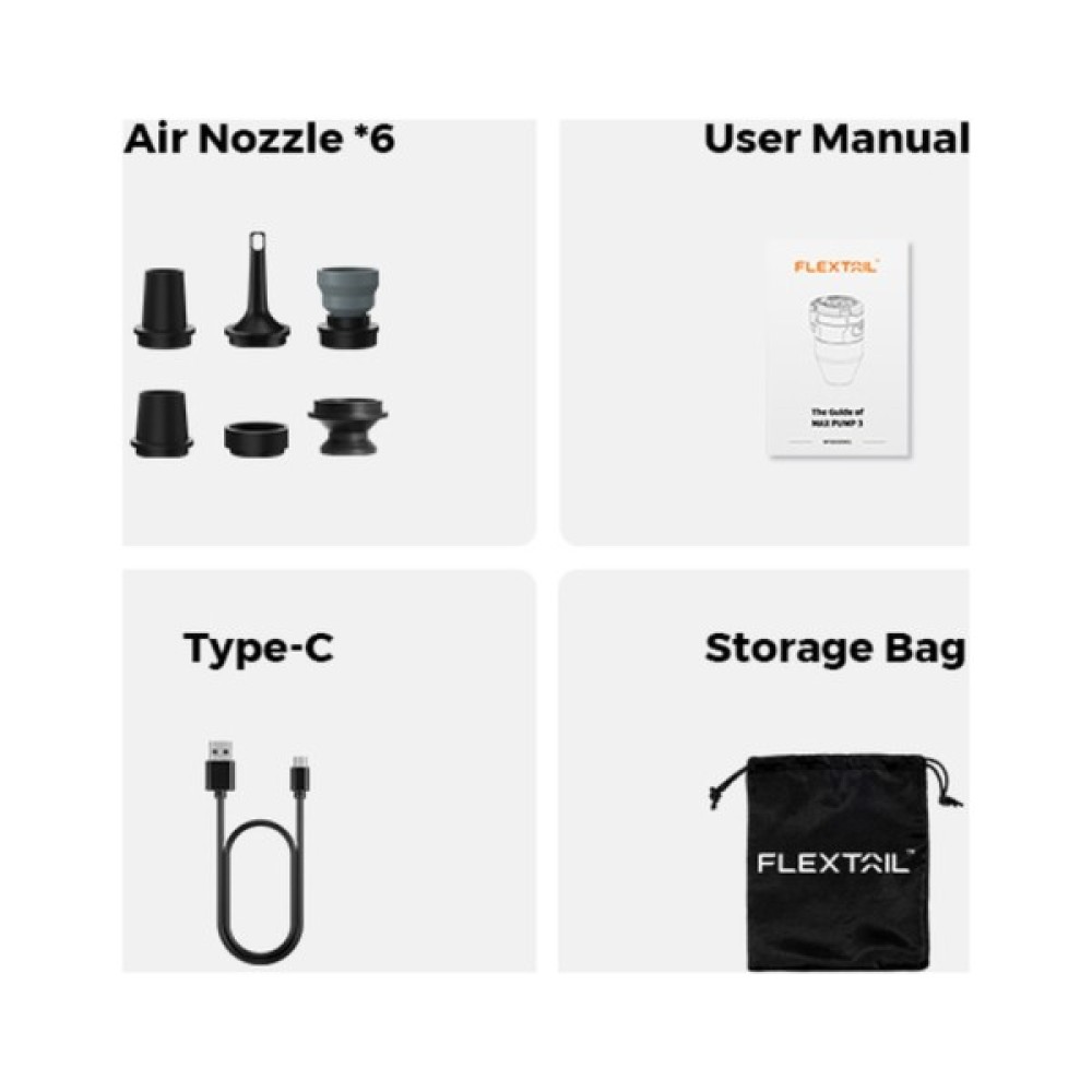 У комплекті ви знайдете 6 універсальних насадок для різних клапанів, що збільшує універсальність використання пристрою. Також до комплекту входить USB-C кабель для зарядки, зручний чохол для зберігання і інструкція користувача, що робить пристрій готовим до використання моментально.