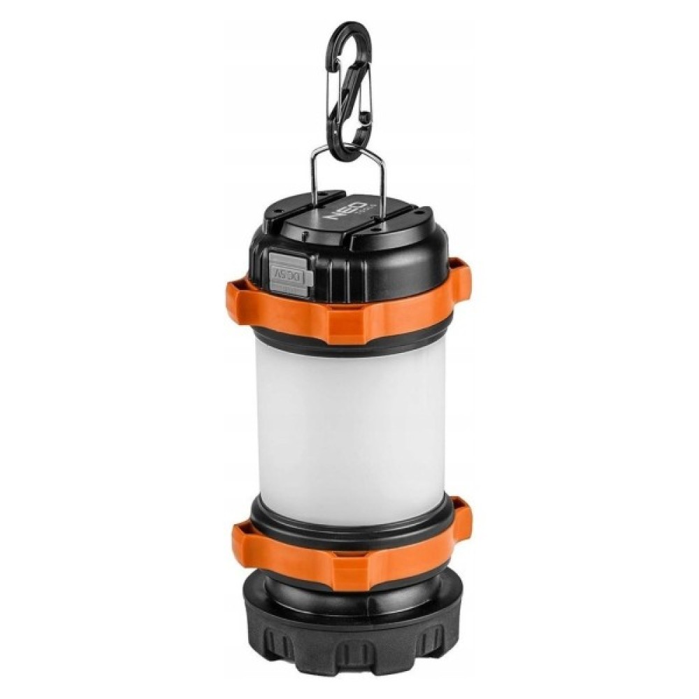 Матеріал корпусу виготовлений з міцного алюмінію та сучасного пластику, що забезпечує високу ударостійкість, надійний захист від вологи та туману. Завдяки цьому, ліхтар Neo Tools стане ідеальним супутником у будь-яких погодних умовах. Ліхтар має спеціальний крюк для підвішування, що додає йому зручності в користуванні.