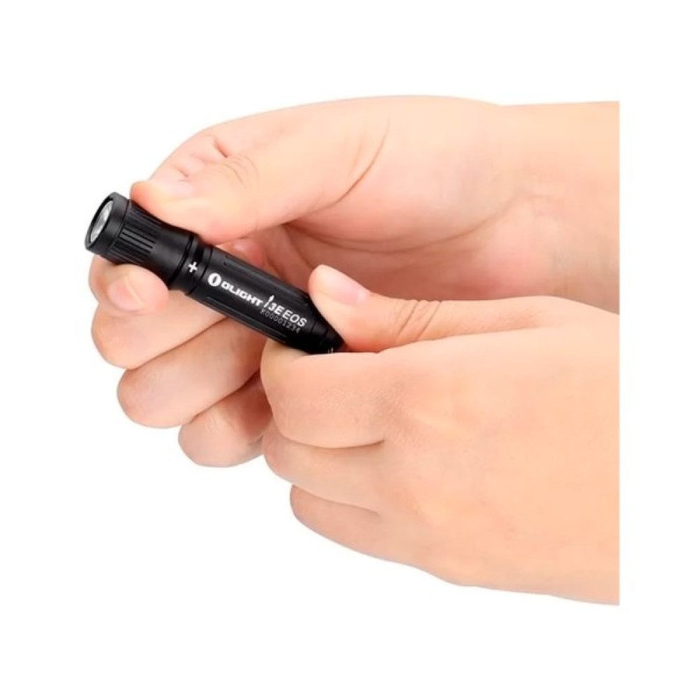 Olight I3E EOS – один із найкомпактніших ліхтарів у лінійці Olight. Завдяки своїм габаритам його можна використовувати як брелок на ключах. Ліхтар має приємний дизайн і поставляється в різних колірних варіаціях корпусу: чорний, червоний, синій, зелений, бузковий та срібний. Працює I3E EOS на світлодідіоді Philips LUXEON, срібна версія - має збільшену продуктивність в 120 lm і дальність світлового променя 48 метрів, решта - мають потужність 90 люмен і дальність світлового променя 44 метрів, що дуже непогано для настільки маленьких ліхтариків.