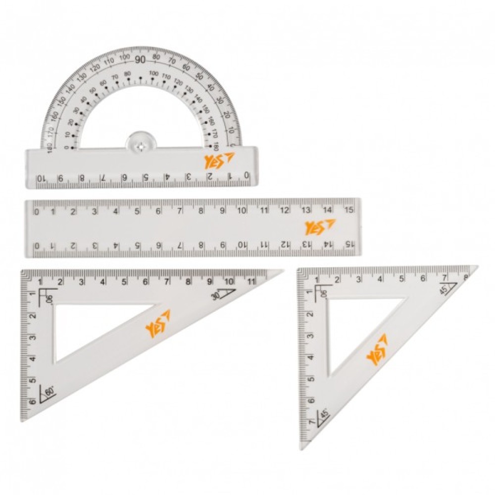 Набір торгової марки Yes призначений для створення креслень, побудов, малюнків, вимірювання лінійних розмірів, відстаней.
