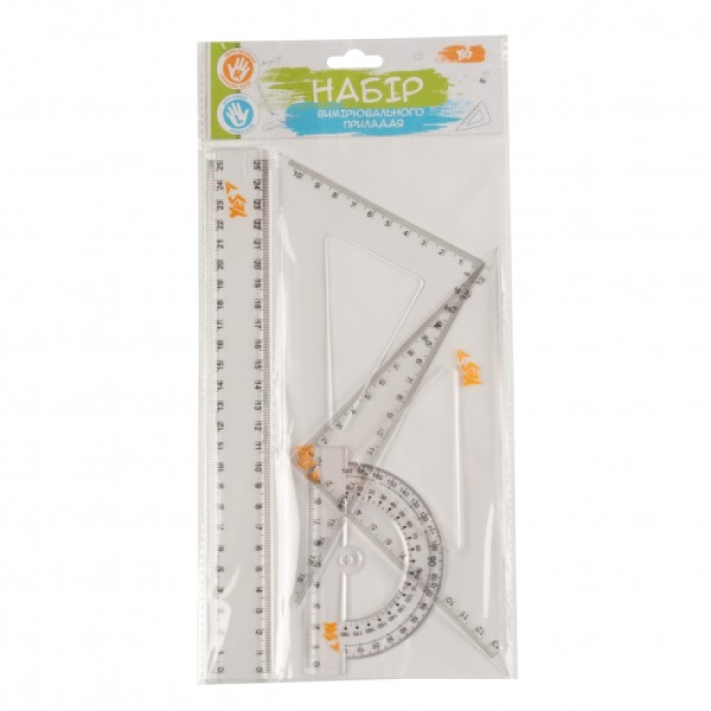 Набір торгової марки Yes призначений для створення креслень, побудов, малюнків, вимірювання лінійних розмірів, відстаней.