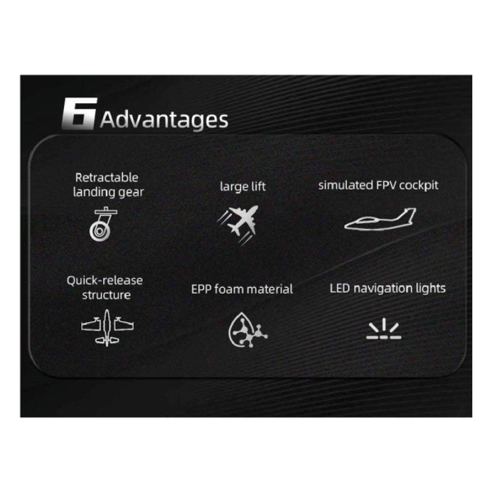 Крило попередньо вмонтовано з посиленими твердими карбоновими стрижнями для збільшення жорсткості крила на кручення під час польоту та структурної міцності важких вантажів для покращення керування точним польотом. Компонування середнього крила робить пропелер більш міцним і легко ушкоджується. Місце встановлення шасі, що забирається, зарезервовано для максимального задоволення від зльоту і посадки, відкритий ліхтар дозволяє гравцям насолоджуватися польотом від першої особи з уявою.