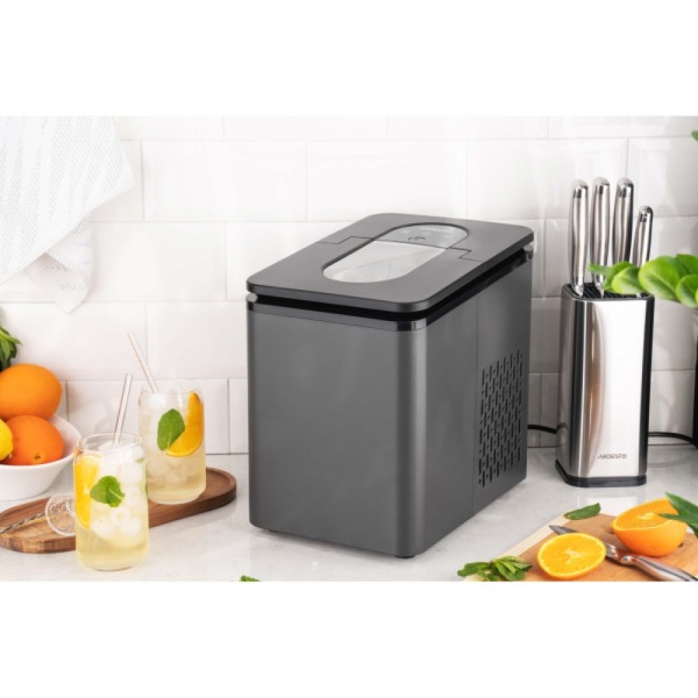 Портативний побутовий льодогенератор Ardesto IM-A1200B призначений для швидкого приготування харчового льоду. Пристрій виконаний у стильному та практичному корпусі чорного кольору, оснащений сенсорною панеллю керування, індикаторами роботи та віконцем для візуального контролю кількості льоду.