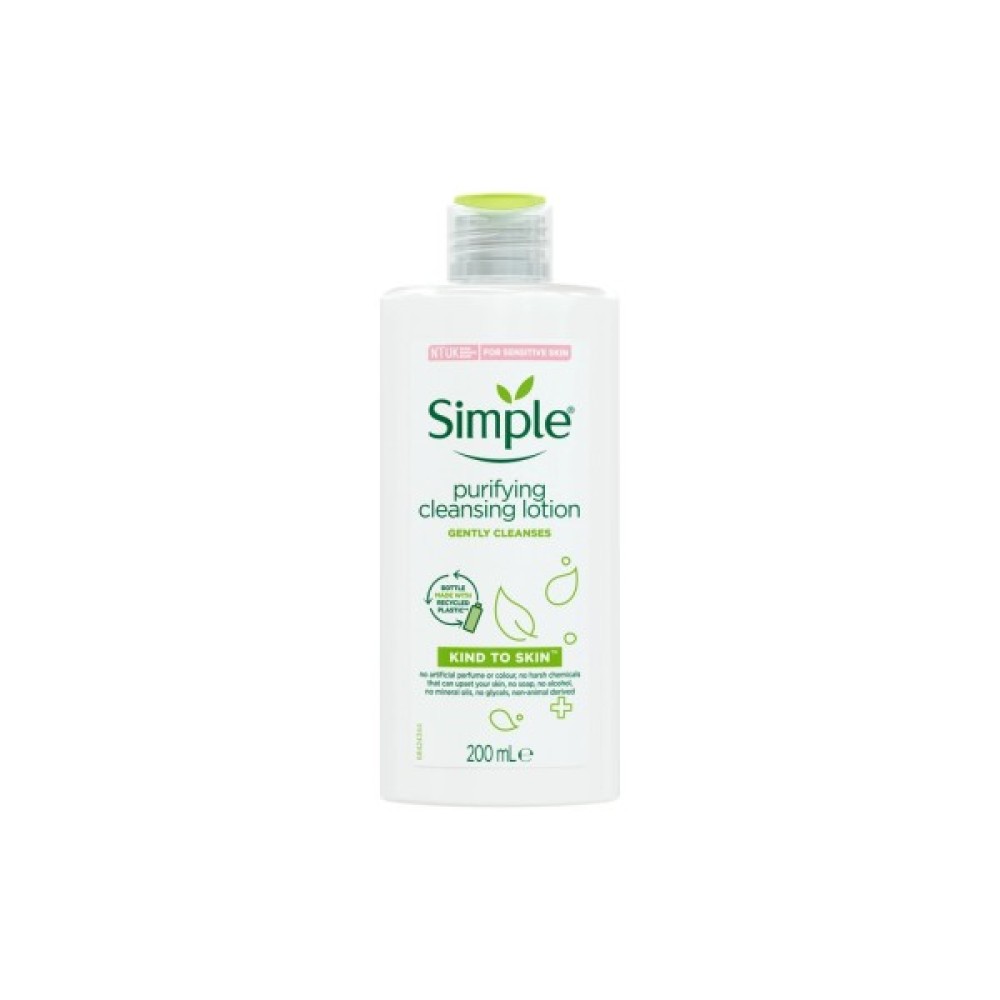 Лосьйон для обличчя від бренду Simple ніжно очищає, та підходить для чутливої шкіри.