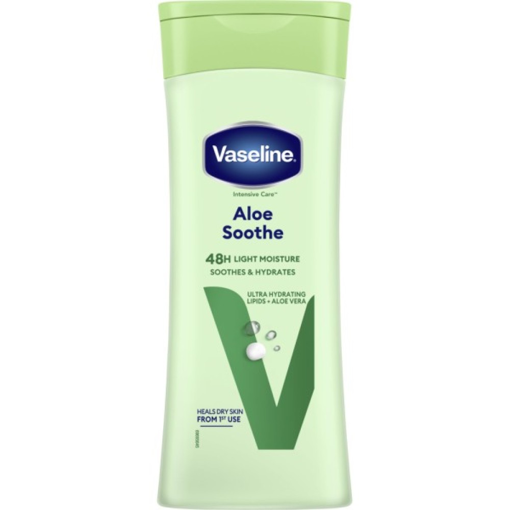 Vaseline Aloe Vera Body Lotion наділений глибоким зволожувальним впливом. Екстракт алое та інші активні компоненти пом'якшують огрубілі ділянки, загоюють ранки і мікротріщини, регенерують пошкоджені ділянки структури епідермісу, а також заспокоюють подразнення. Засіб рівномірно розподіляється і швидко всотується, залишаючи приємні відчуття. Після нанесення не буде ні липкого шару, ні жирності, тому ви одразу зможете надягнути одяг, не забруднивши його.