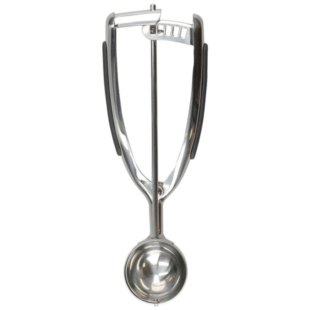 Ця ложка для морозива з нержавіючої сталі KitchenAid із тригером ідеально підходить не тільки для черпання морозива та інших заморожених десертів, але й для набирання однорідних кульок тіста для печива або фаршу для фрикадельок. Підпружинений механізм вивільняє черпак приблизно з 1½ столової ложки, стиснувши ручку з м’якого руків'я.