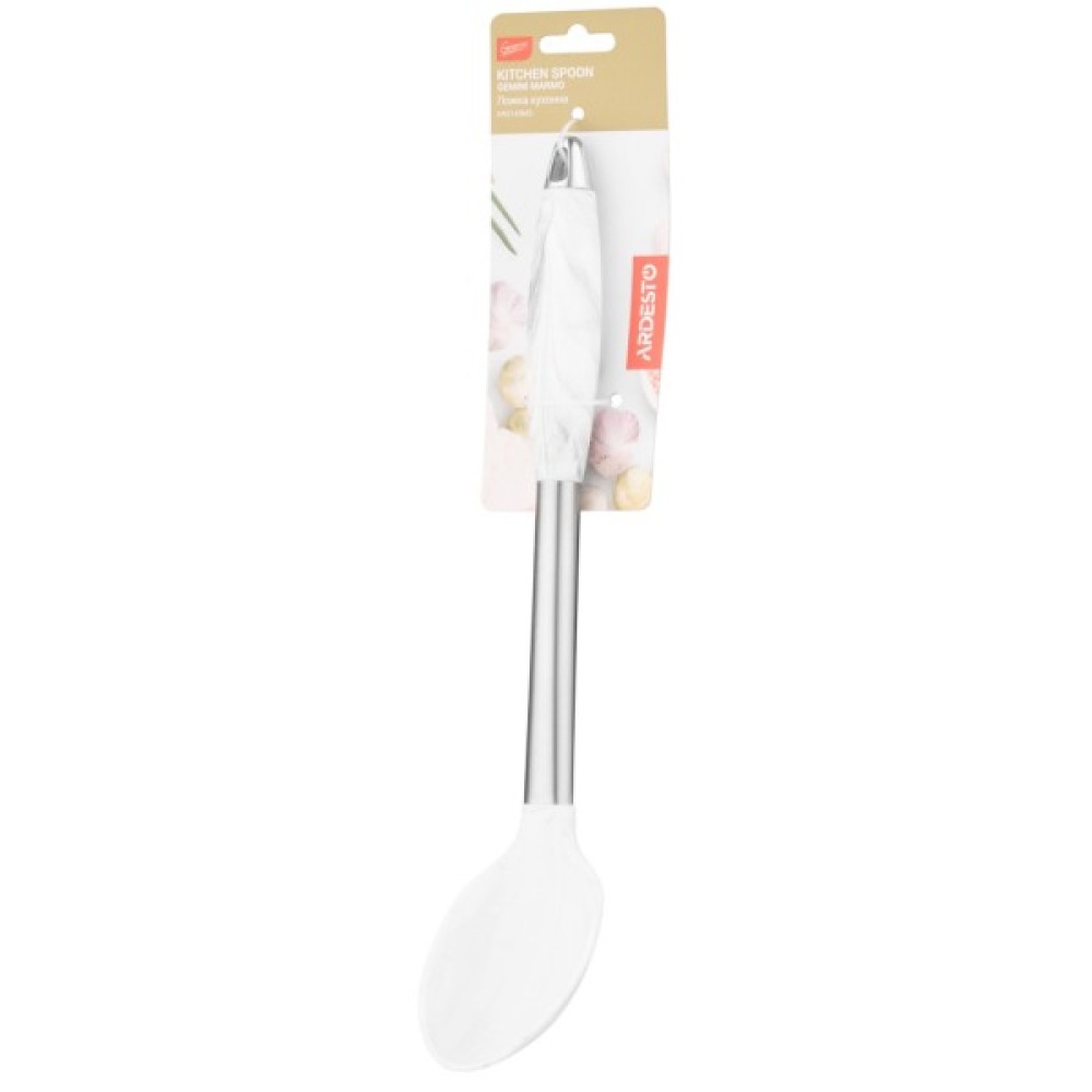 Ложка ARDESTO Gemini Marmo виготовлена з силікону, який добре витримує перепади температури. Міцне руків’я з нержавіючої сталі з насадкою з силікону зручно лягає в руку та не вислизає. Довжина ложки – 33 см. Виріб можна мити в посудомийній машині.