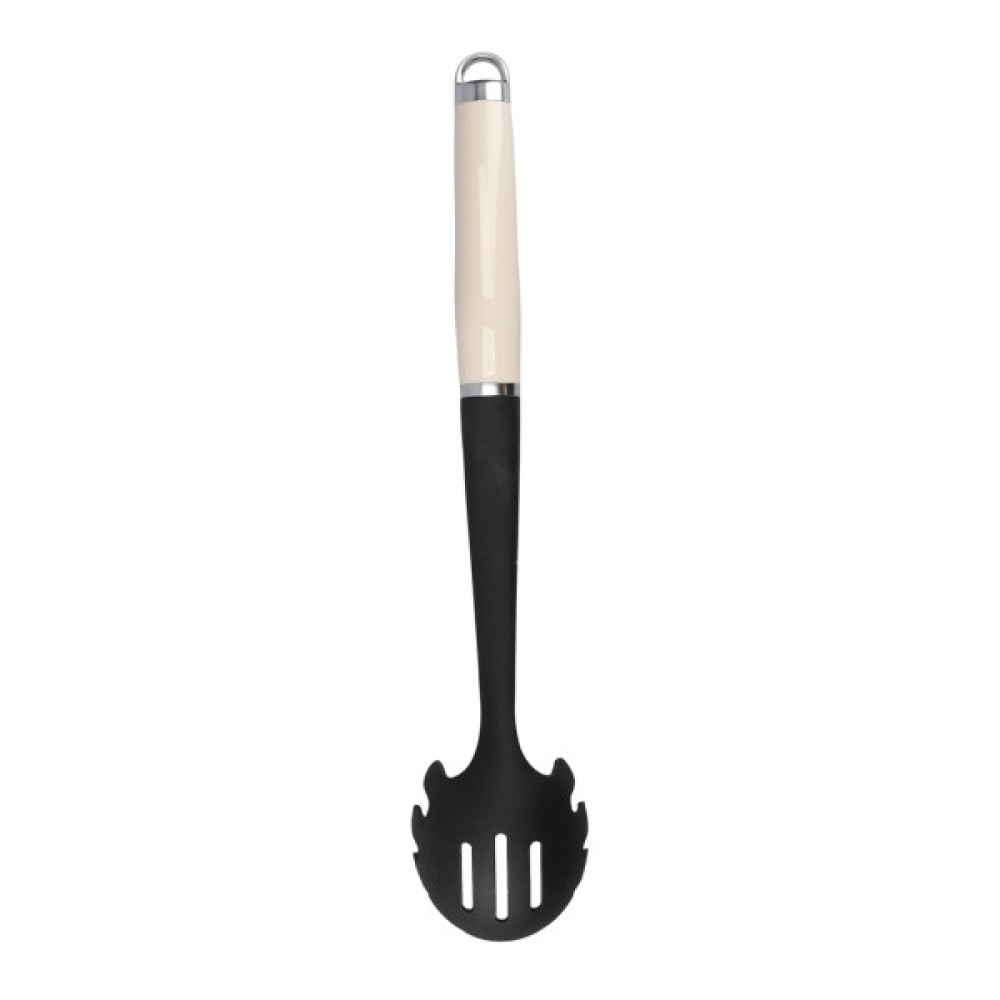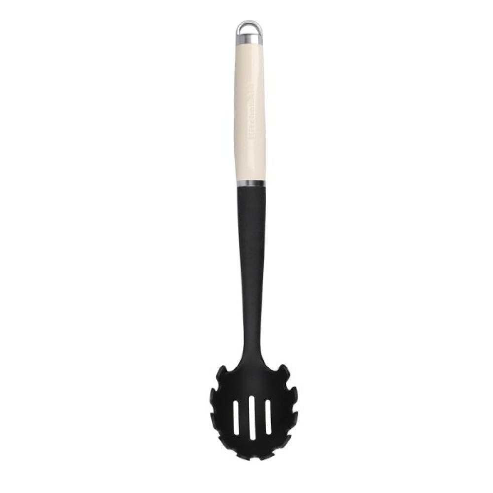 Ложка для пасти KitchenAid Coreline ідеально підходить для подачі ваших улюблених страв з макаронних виробів. Від пенне до феттучіні, вона ідеально підходить для швидкого зливання води та подачі на стіл. Вона безпечна для використання з антипригарним посудом і термостійка до 232°C/450°F. На глянцевій ручці є рельєфний логотип, а також сатинована хромована підставка та петля для підвішування. Її можна мити в посудомийній машині для легкого очищення.