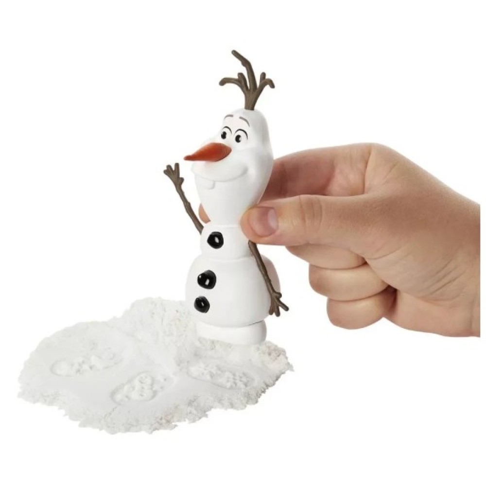 Діти можуть прикріплювати чотири різні форми до підошви Олафа і створювати веселі малюнки на піску для ліплення, що імітує сніг.