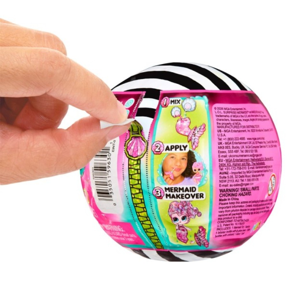Знайомтеся з ігровим набором з лялькою L.O.L. SURPRISE! - МИЛІ РУСАЛОНЬКИ. Створіть незвичайну русалоньку з витонченим хвостом і блиском для губ для власного океану краси! Русалоньки мають різні образи, зачіски та форми хвостів — оберіть улюблену та поринайте у творчість з L.O.L. SURPRISE!