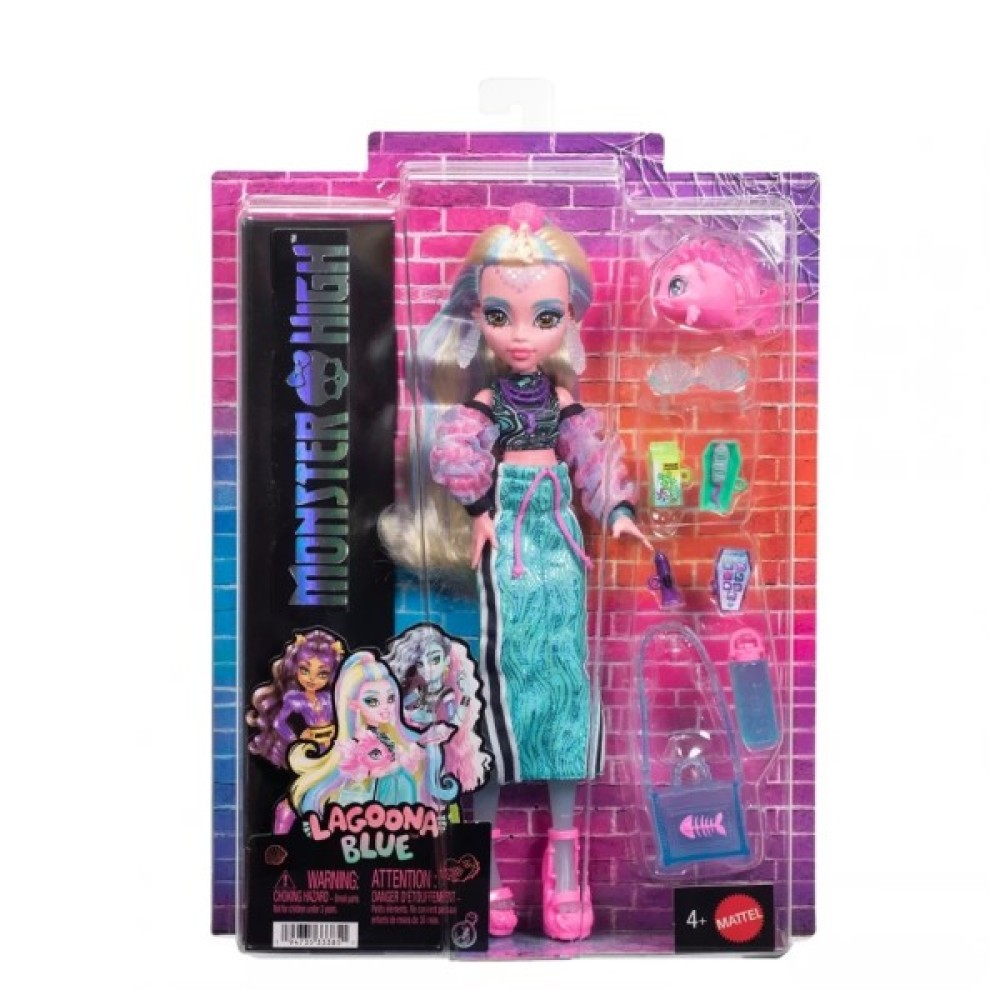 Лялька Lagoona Blue неймовірно стильна та готова підкорити Школу Монстрів! Разом зі своєю ручною піраньєю Нептуною та тематичними аксесуарами вона створює яскравий морський образ.