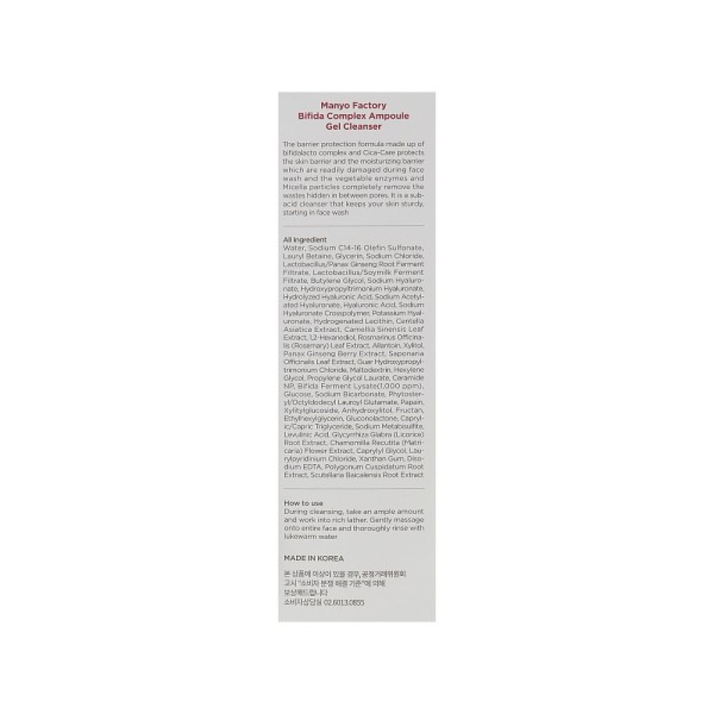 Bifida Complex Ampoule Gel Cleanser бренда Manyo містить активні компоненти, які усувають всілякі забруднення, абсорбують себум і мінімізують кількість шкідливих бактерій.