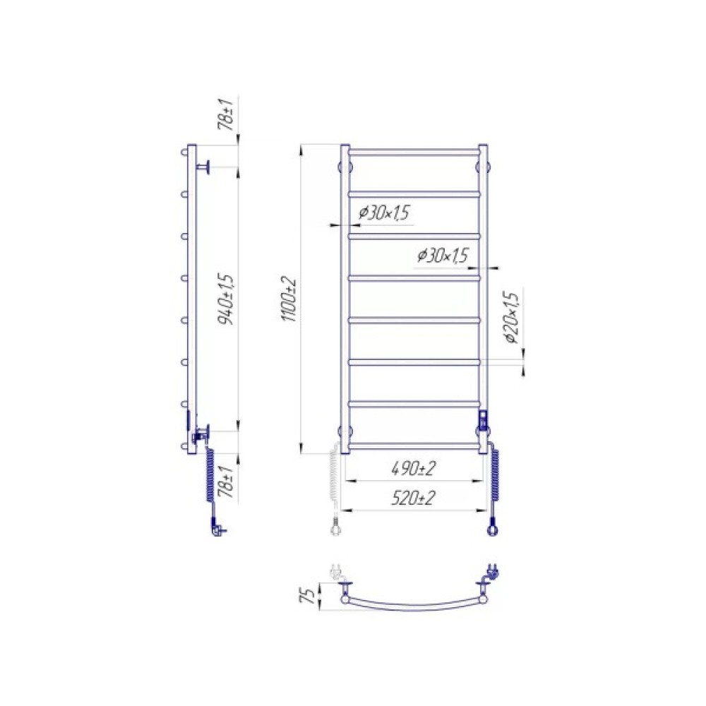 Замість звичного шнура з фіксатором в конструкції виробу присутні роз’єми на обох стійках, що дозволяють підключити рушникосушарку до мережі живлення з будь-якого боку. Розетка справа чи зліва? Тепер не потрібно згадувати, з якого боку знаходиться розетка