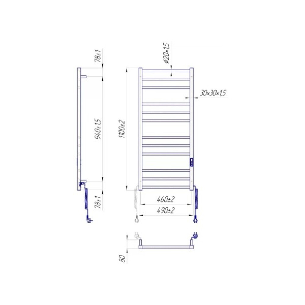Замість звичного шнура із затискачем у конструкції виробу передбачено роз'єми на обох стійках, що дають змогу під'єднати рушникосушку до блоку живлення з будь-якого боку. Розетка праворуч чи ліворуч? Тепер вам не потрібно запам'ятовувати, з якого боку розташована розетка. Роз'єм для електричних рушникосушок