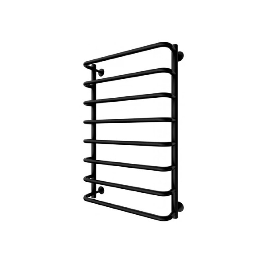 Рушникосушарка "Маріо" Стандарт 800х530/500. Розміри: висота - 800 мм, ширина - 530 мм, глибина 170 мм, міжцентрова відстань для підключення - 500 мм, діаметр підключення G1/2''. Варіанти підключення: нижнє, діагональне та бічне. Кількість ребер - 8, стояки з круглої труби. Виготовлена з полірованої нержавіючої сталі без хромування. Варіанти покриття: полірована або сатин, чорний мат, білий глянець, золото, бронза.