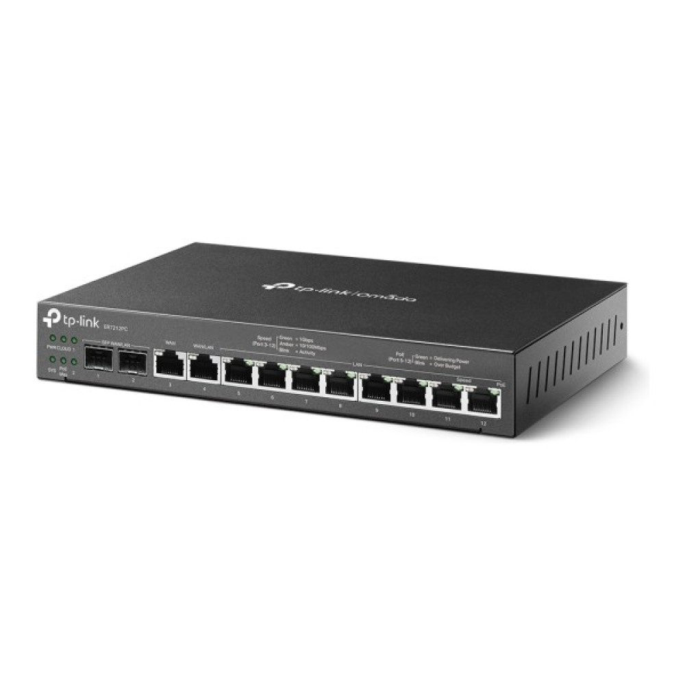 Маючи 12 гігабітних портів, серед яких 9 LAN (RJ-45) з швидкістю до 1 Гбіт/с і 2 SFP-порти для гнучкості мережевих з'єднань, ER7212PC ідеально підходить для підприємств, що потребують надійної та масштабованої інфраструктури. Зокрема, 4 порти WAN Ethernet, включно з 1 Гігабітним портом WAN RJ45 і 1 Гігабітним портом WAN/LAN, покращують можливості підключення до інтернету.