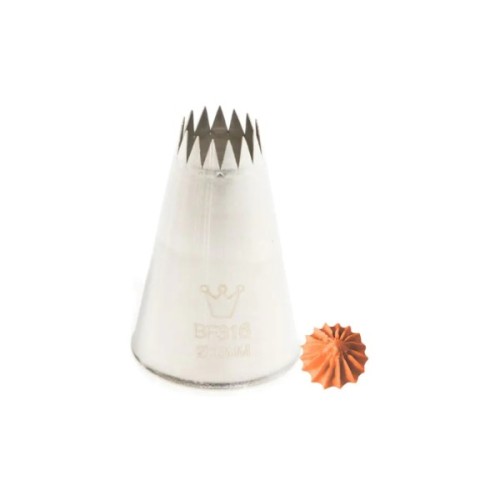 Професійна кондитерська насадка Martellato використовується для прикраси тортів, капкейків, тістечок, кексів, пирогів, мафінів та інших десертів у кондитерських відділеннях, кафе, ресторанах, барах. Насадка щільно кріпиться до мішка, забезпечуючи порційне і точне розподілення кремової маси, створюються красиві візерунки. Інвентар дозволяє працювати з кремами, начинками та мусами легкої та щільнішої консистенції. Прилад набагато прискорює та спрощує процес приготування, з дотриманням усіх санітарних норм. Насадка виготовлена з нержавіючої сталі, зносостійкого матеріалу, безпечного для їжі, не окислюється. Виріб дуже міцний і призначений для багаторазового застосування.