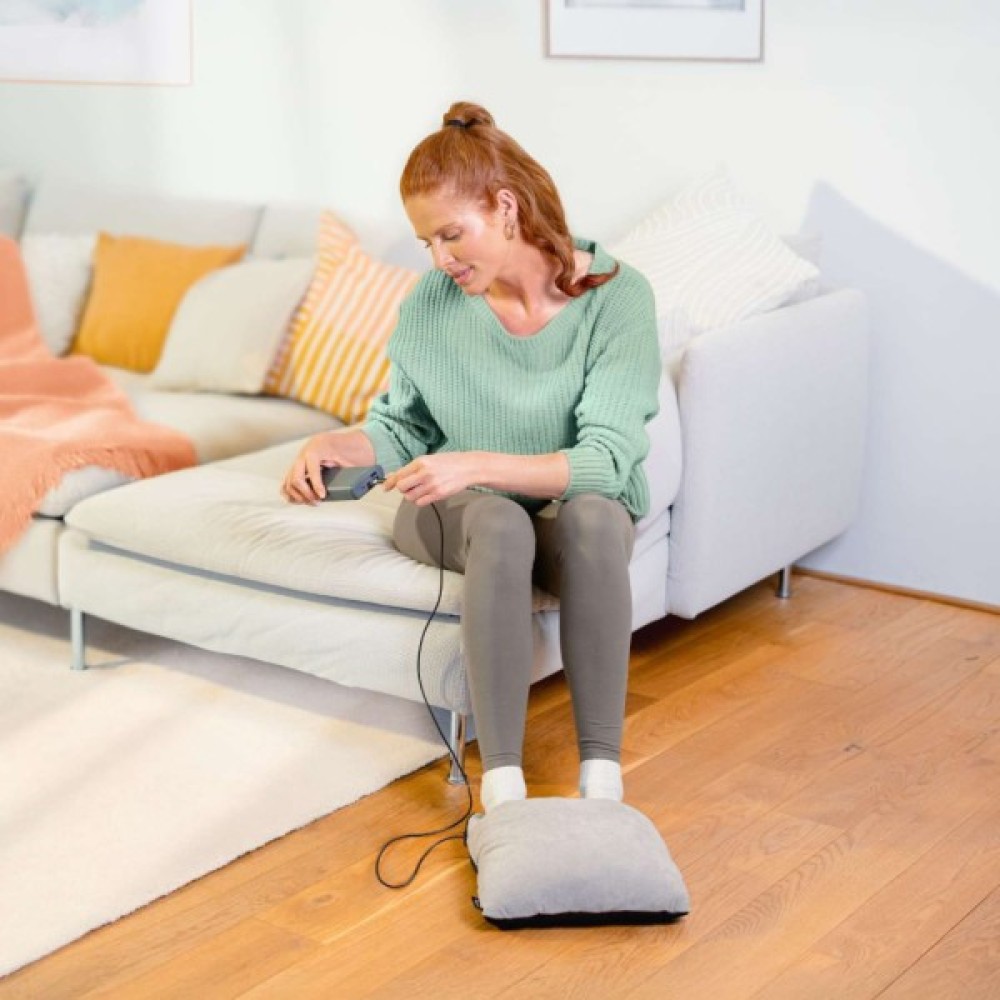 Бойрер FM 28 — компактна грілка-масажер для ніг із функцією глибокого вібромасажу та приємного зігрівання. Вона поєднує масаж і тепло в одному приладі, допомагає швидко зняти втому стоп, покращує кровообіг і дарує комфорт після робочого дня. FM 28 працює від USB-кабелю або адаптера, тому підходить для дому, відпочинку на дивані та офісу. Масажер має 3 програми — вібрація, вібрація + тепло та інтенсивний режим. Теплова функція активується за бажанням й забезпечує м’яке, рівномірне прогрівання, що підсилює масажний ефект. Подушка виготовлена з приємного на дотик матеріалу, має компактний дизайн та зручну форму, яка підтримує стопи у природному положенні. Завдяки автоматичному вимкненню через ~20 хвилин прилад працює безпечно та енергоощадно. FM 28 — це легкий, портативний та ефективний спосіб швидко розслабити ноги та насолодитися приємними відчуттями.