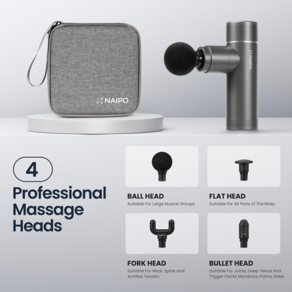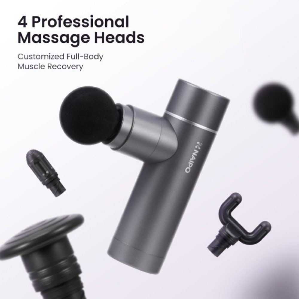 У комплекті передбачено чотири спеціалізовані масажні насадки, розраховані на різні зони тіла та типи навантаження. Чотири рівні інтенсивності дають змогу точно підібрати силу впливу — від м’якого розслаблення для чутливих ділянок до глибшого опрацювання м’язів. Така гнучкість робить NAIPO NPMGUN-J11 MASSAGE GUN актуальним як для новачків, так і для досвідчених користувачів, які цінують контроль і адаптивність.