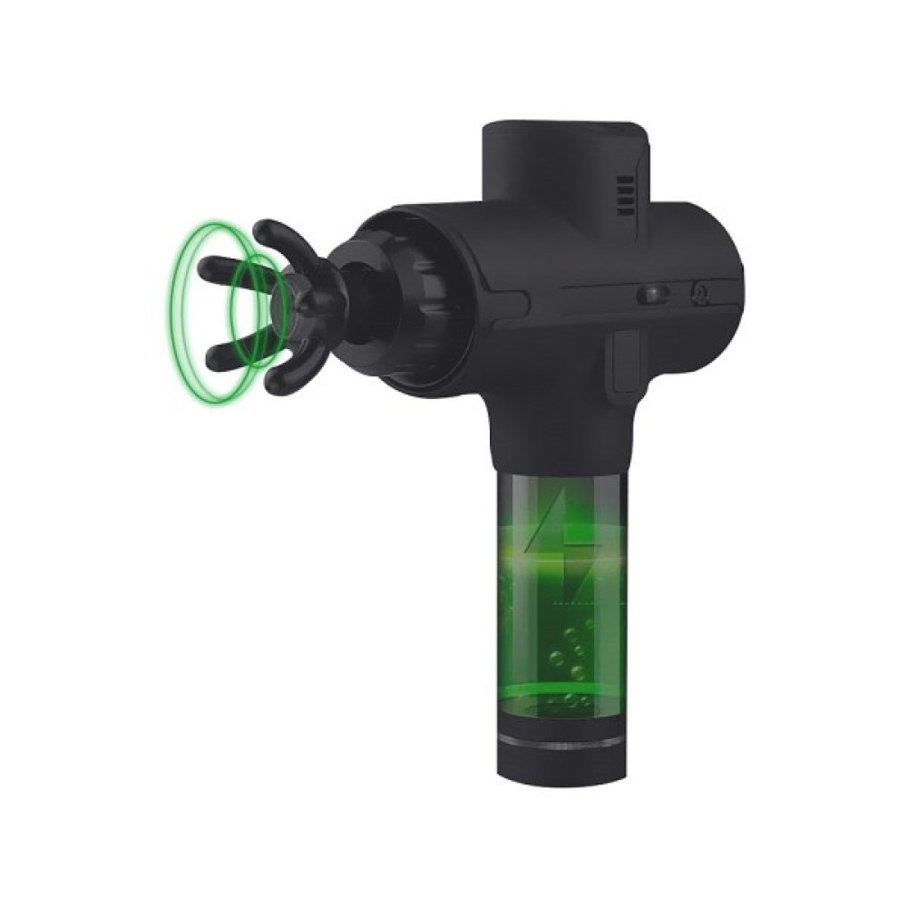 Масажер має 9 рівнів інтенсивності масажу, що дозволяє індивідуально регулювати швидкість відповідно до м’язів, на яких він буде використовуватися. Пістолет має дисплей, що показує рівень, тому маєте постійний контроль над ним. Інтенсивність роботи змінюється за допомогою сенсорної панелі. Велика ємність батареї дає можливість безперервно працювати до 8 годин в одному заряді.