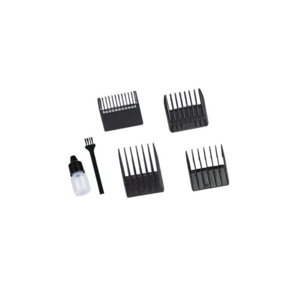 Леза після використання можна чистити за допомогою щіточки, яка йде в комплекті. У наборі до цієї моделі ви знайдете 4 гребеня, які дозволяють регулювати довжину волосся від 3 до 12 мм. Завдяки легкості і компактності ця сімейна машинка для стрижки волосся дуже зручна у використанні і підходить і для дорослих, і для дітей. У комплект також входять гребінець, ножиці і масло.