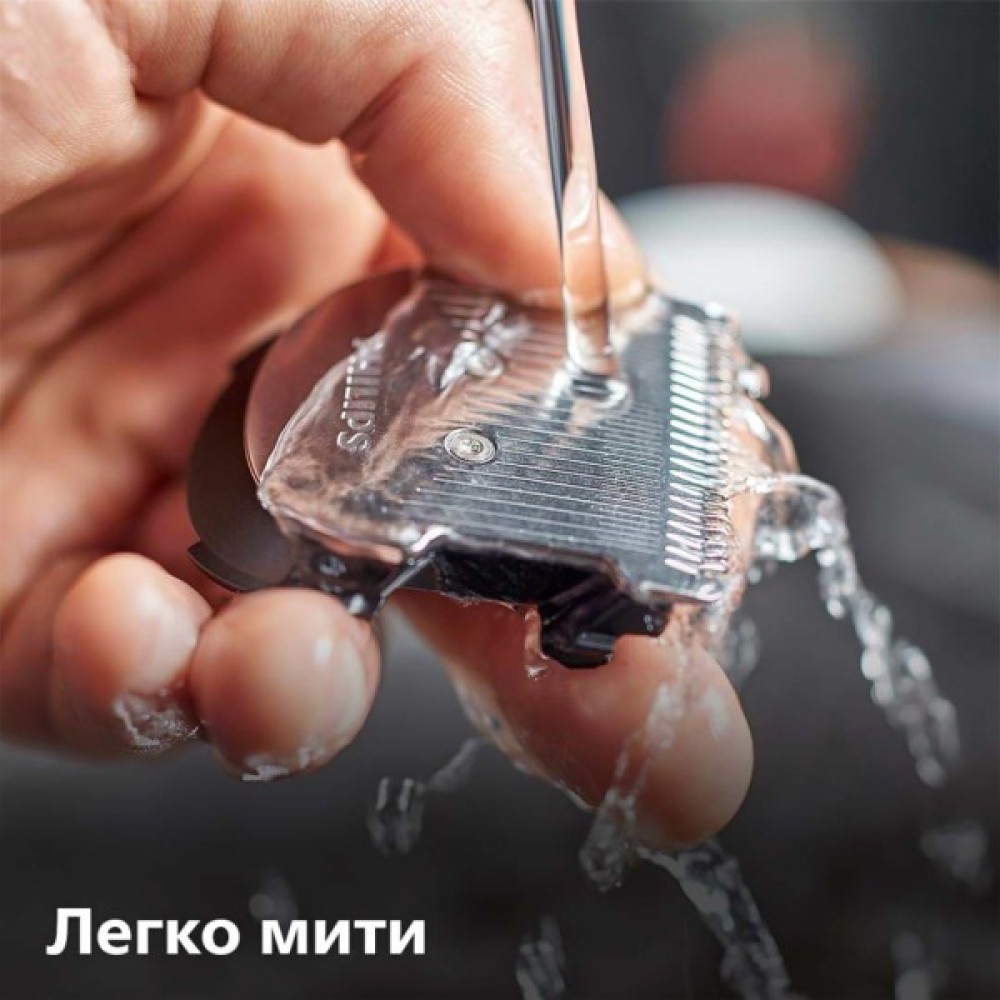 Додатково не потребує змащування; Trim-n-Flow; технологія durapower для тривалої роботи від акумулятора; самозагострювальні металеві леза; 13 налаштувань довжини від 0.5 до 23 мм, які легко вибрати та зафіксувати; гребінець для бороди з 12 налаштуваннями довжини: від 1 до 23 мм; 8-годинного заряджання вистачає на 45 хвилин автономної роботи; ергономічна ручка забезпечує точність та комфорт; знімні леза для зручного очищення; не вимагає догляду та змащення
