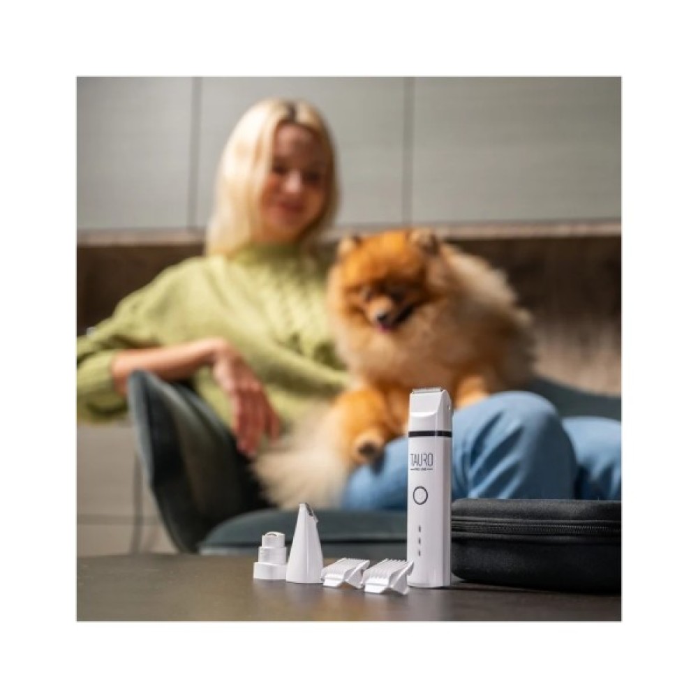 Машинка для догляду за домашніми улюбленцями Tauro Pro Line поєднує машинку для стрижки шерсті та лап і шліфувальну машинку для кігтів, суттєво полегшуючи догляд за домашніми улюбленцями.