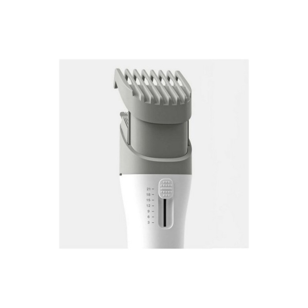 7-ступінчасте налаштування насадки дозволяє обирати довжину від 3 до 21 мм, що робить машинку універсальною для укладки, гоління або догляду за бородою. Просте перемикання режимів підходить для всіх типів волосся та дозволяє швидко переходити від короткої стрижки до більш довших комбінацій. Один пристрій — безліч можливостей для створення бажаного образу.