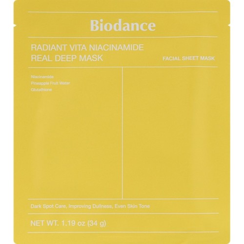 Маска, обличчя, Biodance, Radiant, Vita, Niacinamide, Real, Deep, Mask, 34, г, 8809937361459