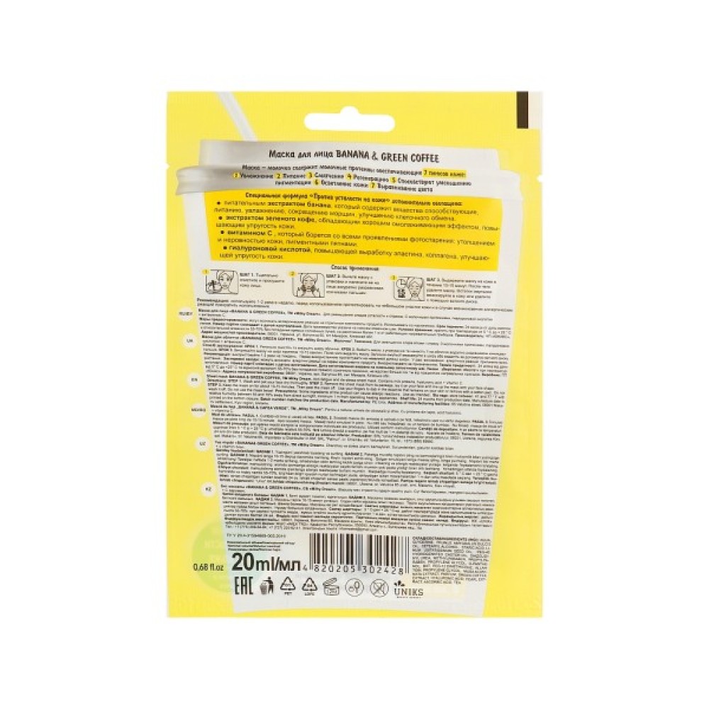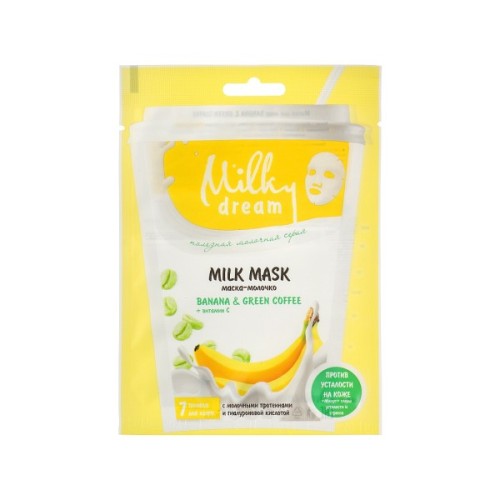 Маска, обличчя, Milky, Dream, тканинна, Банан, і, зелена, кава, 20, мл, 4820205302428