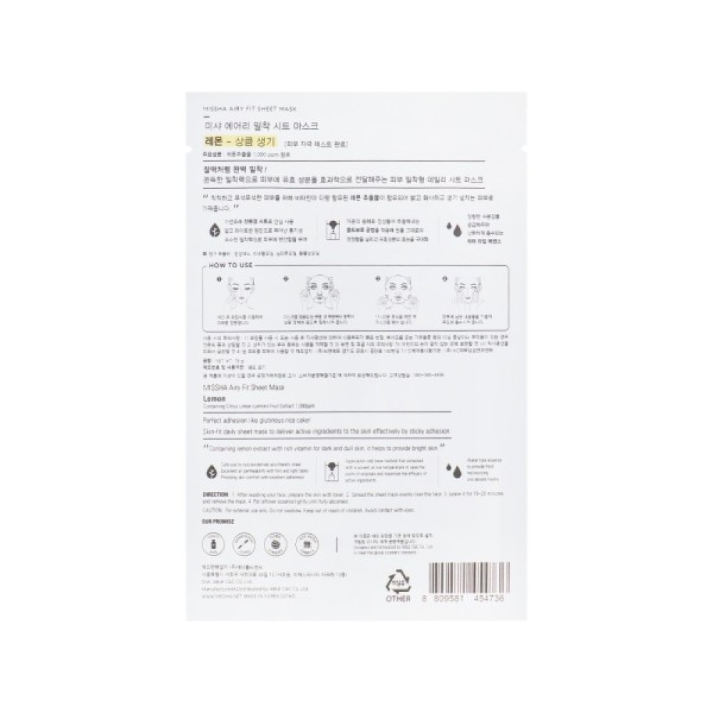 Особливості Missha Airy Fit Lemon Sheet Mask: