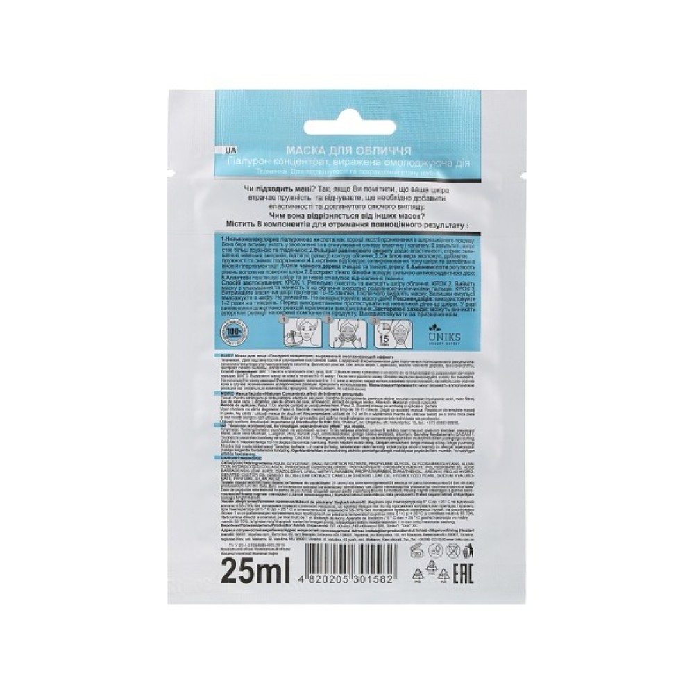 Ретельно очистіть і просушіть шкіру обличчя. Вийміть маску з упаковки і нанесіть її на обличчя, акуратно розрівнюючи кінчиками пальців. Витримайте маску на шкірі протягом 10-15 хвилин, а потім змініть її. Залишки емульсії вмасажуйте в шкіру. Не змивайте. Не використовуйте маску двічі! Використовуйте 1-2 рази на тиждень. Перед використанням протестувати на невеликій ділянці шкіри, а у випадку виникнення алергічних реакцій припинити використання. Можуть виникати алергічні реакції на окремі компоненти продукту.