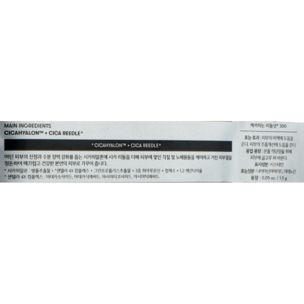 Склад CICAHYALONTM, CICA REEDLE®, Centella 4X Complex, Green Propolis Extract, Triple Hyaluronic Acid, Purified Water, 1,2-Hexanediol, Cysteine, Niacinamide, Adenosine