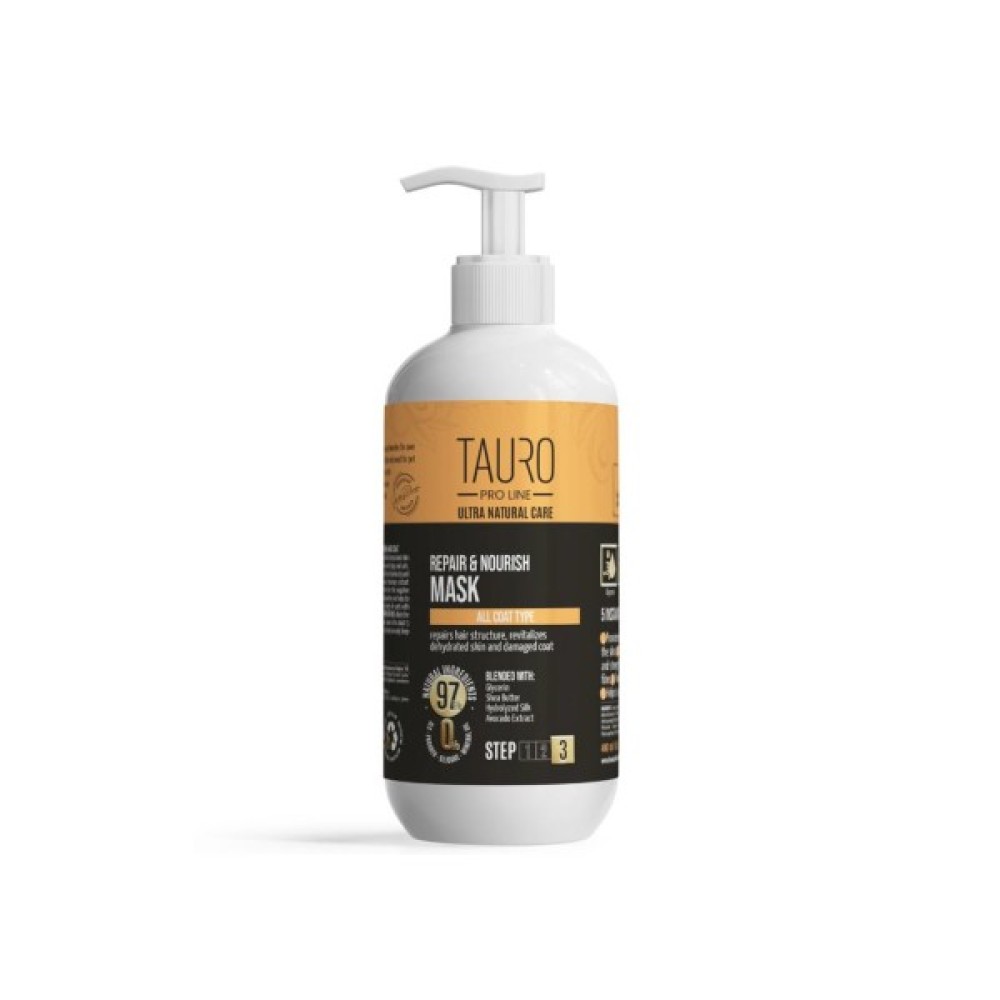 Маска відновлення та живлення TAURO PRO LINE Ultra Natural Care Repair and Nourish – це високоякісний продукт, який підходить собакам і кішкам із усіма типами шерсті.