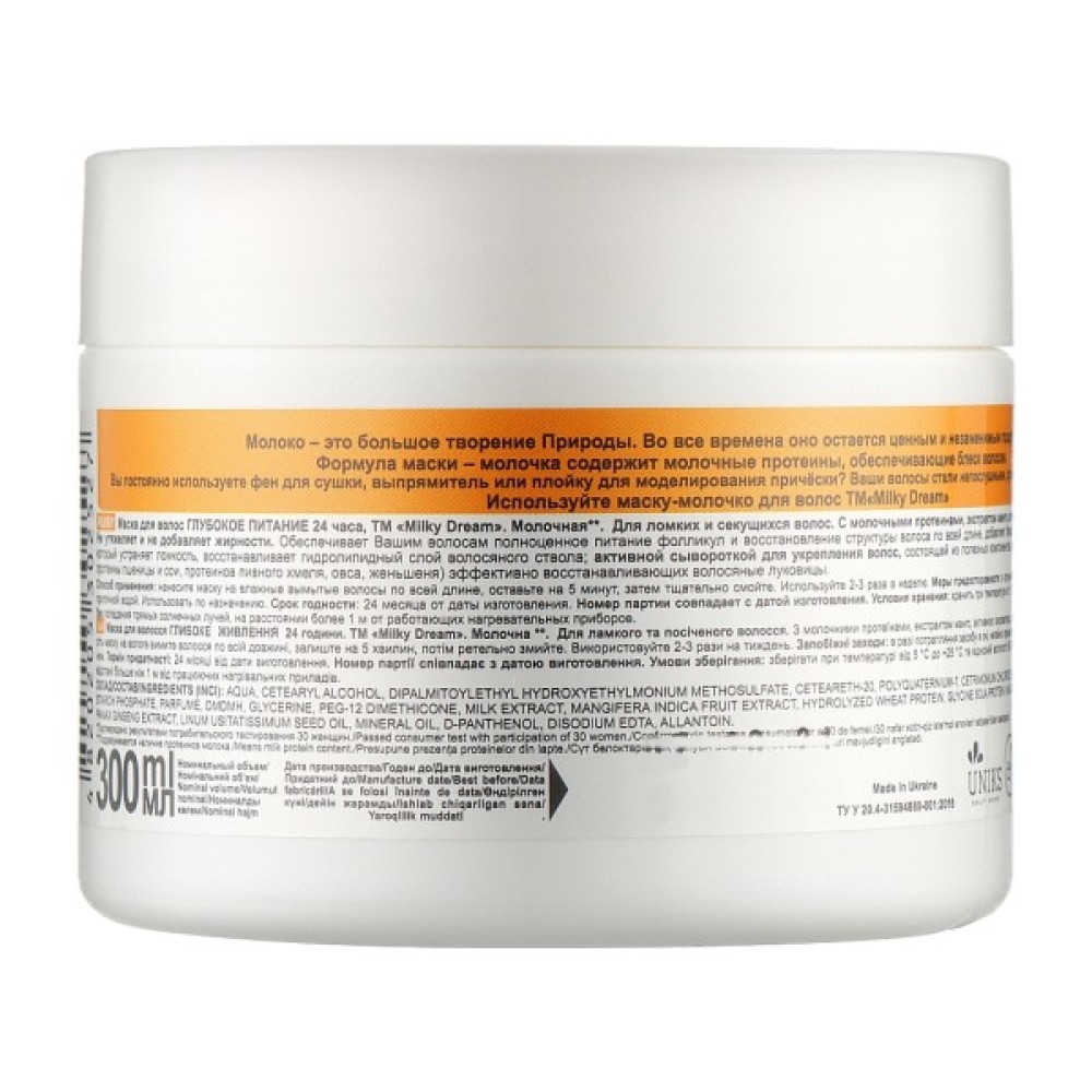 Маска для волосся Milky Dream для ламкого і посіченого волосся Глибоке живлення 24 години 300 мл (4820205302527)