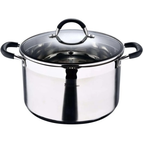 Дно з повною індукцією підходить для будь-яких типів плит, включаючи індукційні та склокерамічні. Ручки з нержавіючої сталі із кріпленням точковим зварюванням. На ручках приємні чорні силіконові накладки Soft touch – вони забезпечують зручне захоплення, не ковзають та не нагріваються. Ударостійка скляна кришка з отвором для паровиведення та ободом із нержавіючої сталі. На внутрішній стінці каструлі нанесено мірну шкалу для дозування рідких продуктів. Каструлю Bergner Master Pro Foodies можна мити в посудомийній машині.