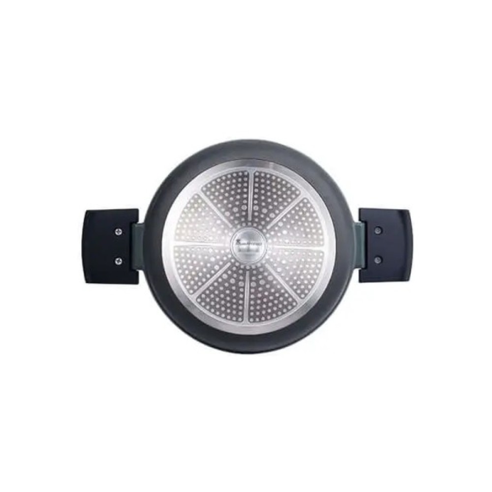 Насолоджуйтесь міцністю каструлі з литого алюмінію з антипригарним покриттям. Нагрівається в 1,5 рази швидше і в 2 рази легше за чавун, але така міцна. Ця велика каструля оснащена м'якими ручками та кришкою із загартованого скла для максимальної зручності приготування їжі.