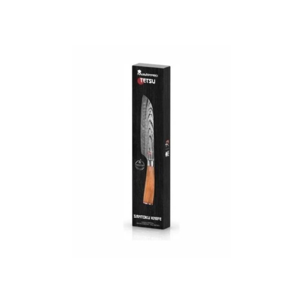 Ножі серії Tetsu відрізняються винятковою міцністю, виготовлені з високоякісної нержавіючої сталі та забезпечують максимальний контроль і впевненість під час приготування їжі. Леза мають антипригарне покриття з ефектом дамаської сталі, що забезпечує бездоганний кут різу та легке ковзання по продуктах.