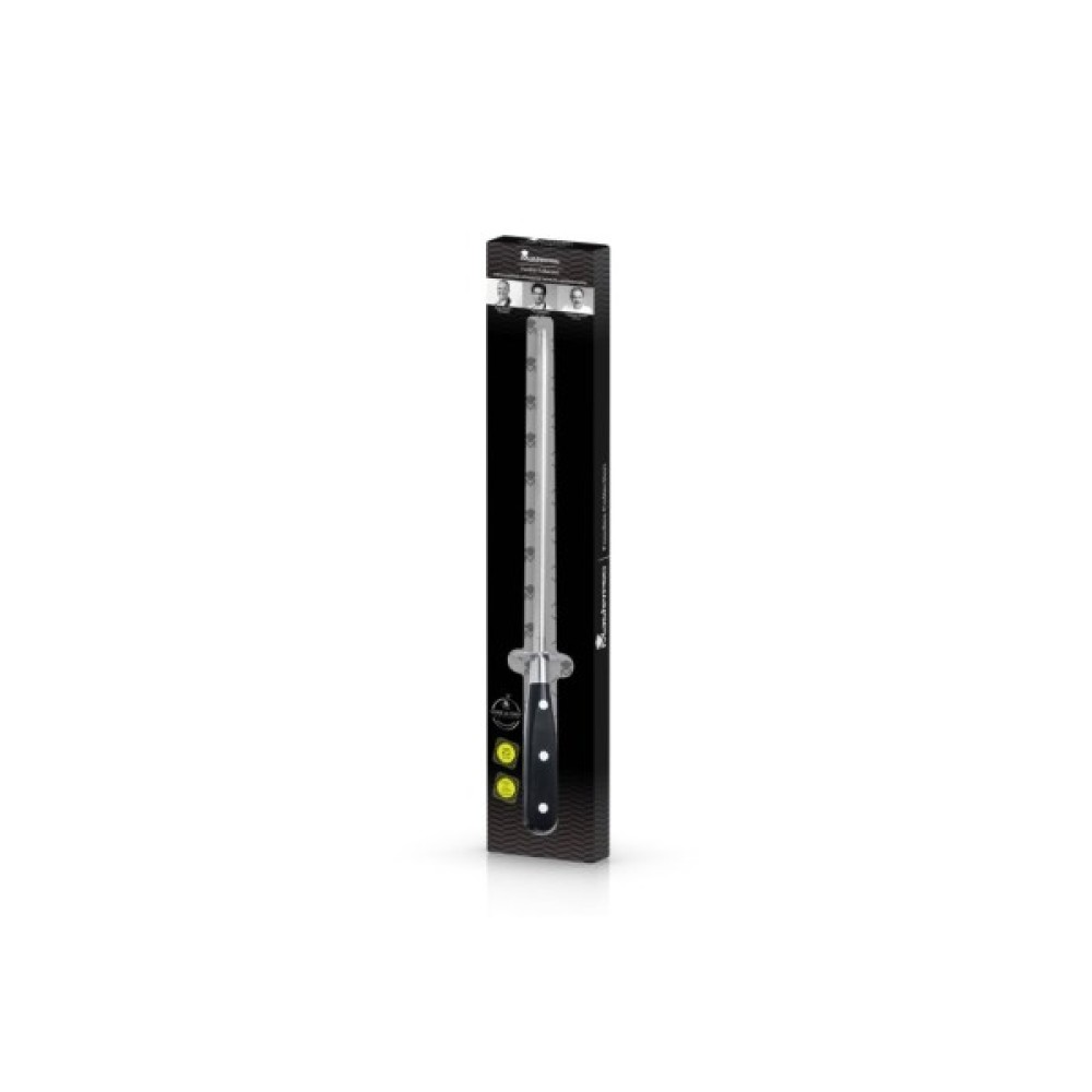 Точило MasterPro Foodies collection, виготовлене з нержавіючої сталі, стане надійним вибором для всіх, хто шукає ефективний інструмент для загострювання ножів. Зручний дизайн та високоякісні матеріали забезпечують довговічність та надійність цього продукту. Виконане в елегантних чорному та металічному кольорах, точило гармонійно впишеться в інтер'єр вашої кухні.
