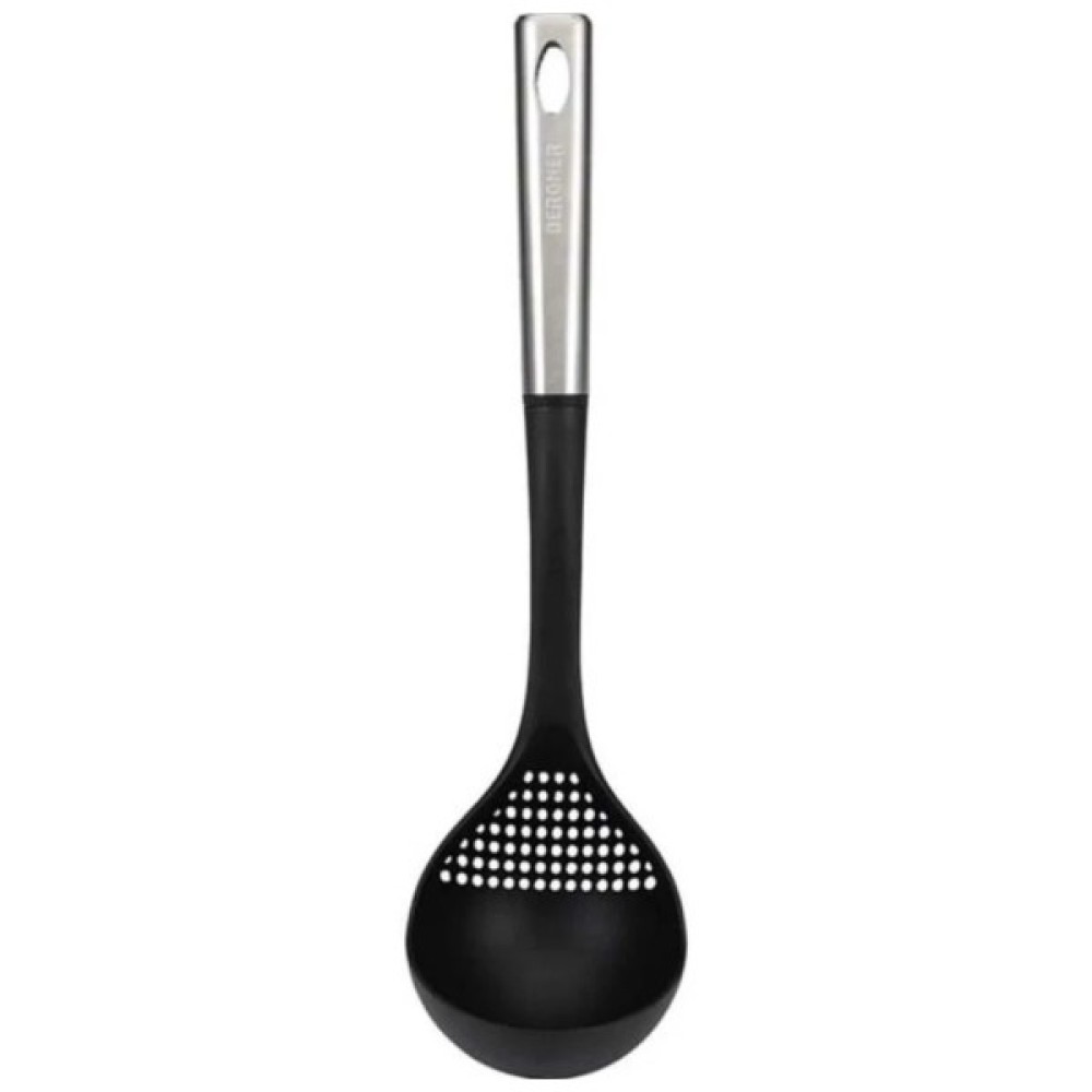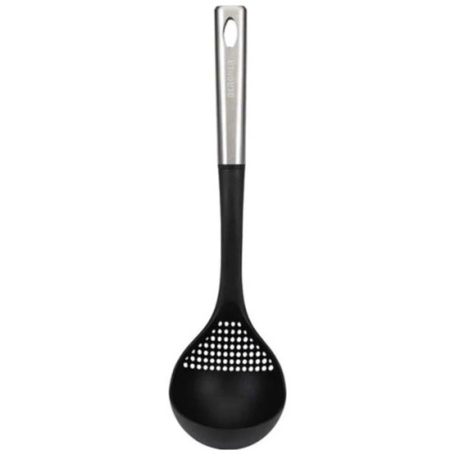 Нейлоновий половник Bergner MasterPro Foodies collection (BGMP-4520) можна використовувати для кухонного посуду з антипригарним покриттям. Він не пошкоджує і не дряпає покриття. Ручка із нержавіючої сталі з кільцем для підвішування. Колір нейлону — чорний.
