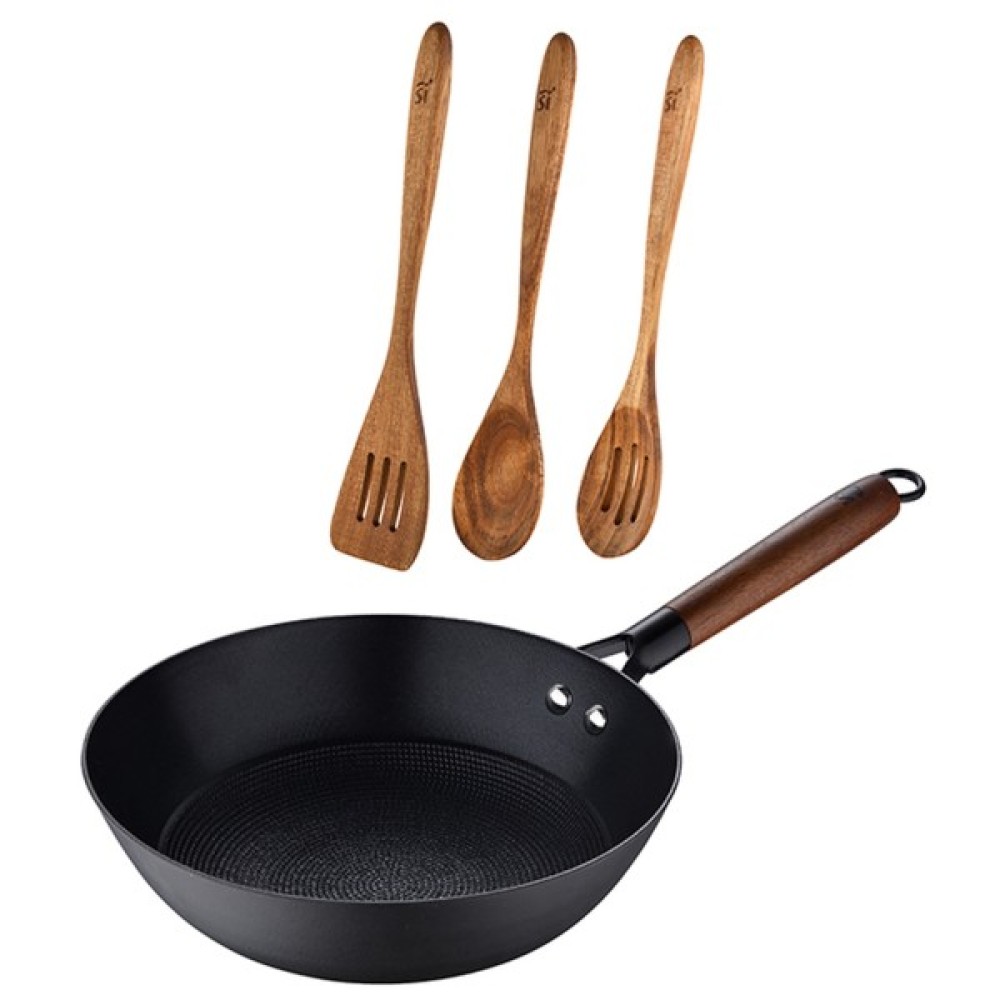 MasterPro Odin - Ця сковорода вок спеціально розроблена як для початківців, так і для досвідчених кухарів. Це дуже корисний кухонний інструмент для приготування страв східної гастрономії, таких як китайський рис, овочі, локшина та інші. Форма в його конструкції поєднується з будь-яким стилем кухні, а кольори ідеально адаптуються до навколишнього середовища. Матеріали, використані для її виготовлення, відрізняються високою якістю, міцністю і довготривалою стійкістю, а сама вона виготовлена з чавуну, матеріалу, відомого своїми якостями щодо ефективного утримання температури, що дозволяє повільне, але прогресивне приготування різних рецептів. Ця функціональна характеристика доповнюється стійким до високих температур зовнішнім покриттям, що захищає загальну цілісність приладу. Внутрішня частина дна укріплена керамічним шаром, який запобігає прилипанню їжі, забезпечуючи більш плавне приготування, а розміри складають 24x44x7,5 см, з корисною глибиною для введення значної кількості їжі. Овальна форма контейнера дозволяє дрібним і рідким інгредієнтам залишатися в каструлі, без PFAS. І, нарешті, допоможіть собі підготувати, приготувати і презентувати їжу за допомогою цих 3 предметів посуду, виготовлених з міцної деревини акації
